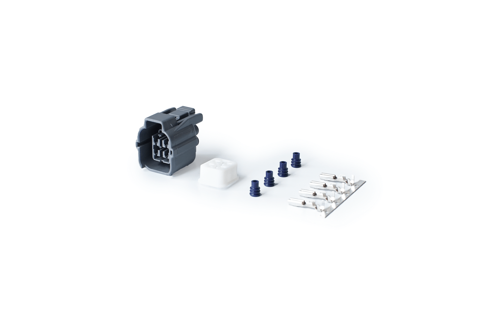 OEM-style 4-position connector kit used on the engine harness side of Honda oxygen sensor wiring. This sealed connector ensures a proper, weatherproof connection for accurate O2 sensor readings, critical to fuel and ignition management.
