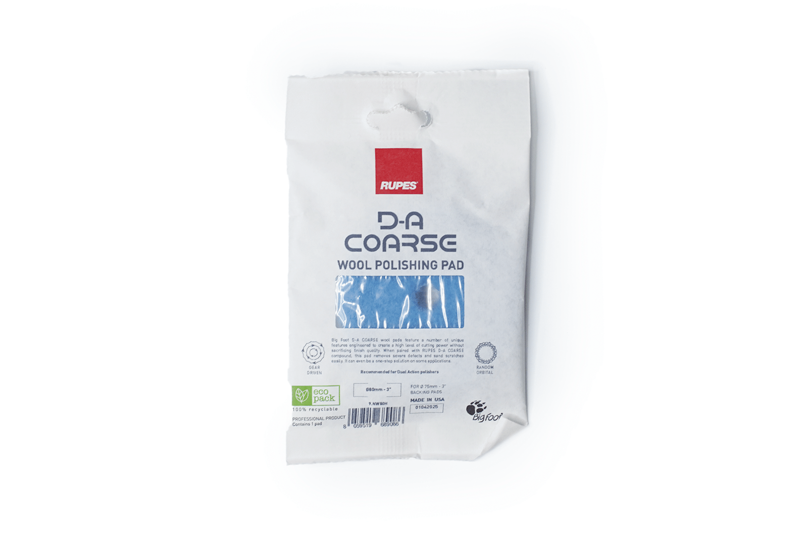 Ideal for use after 3M Trizact 5000 sanding as part of a multi-step correction process, this pad works especially well with Rupes DA Coarse Compound to eliminate sanding marks, deep swirls, and heavy oxidation. The wool fibers provide aggressive cutting power without excessive heat build-up, while the foam interface adds flexibility for consistent results on flat or contoured panels.