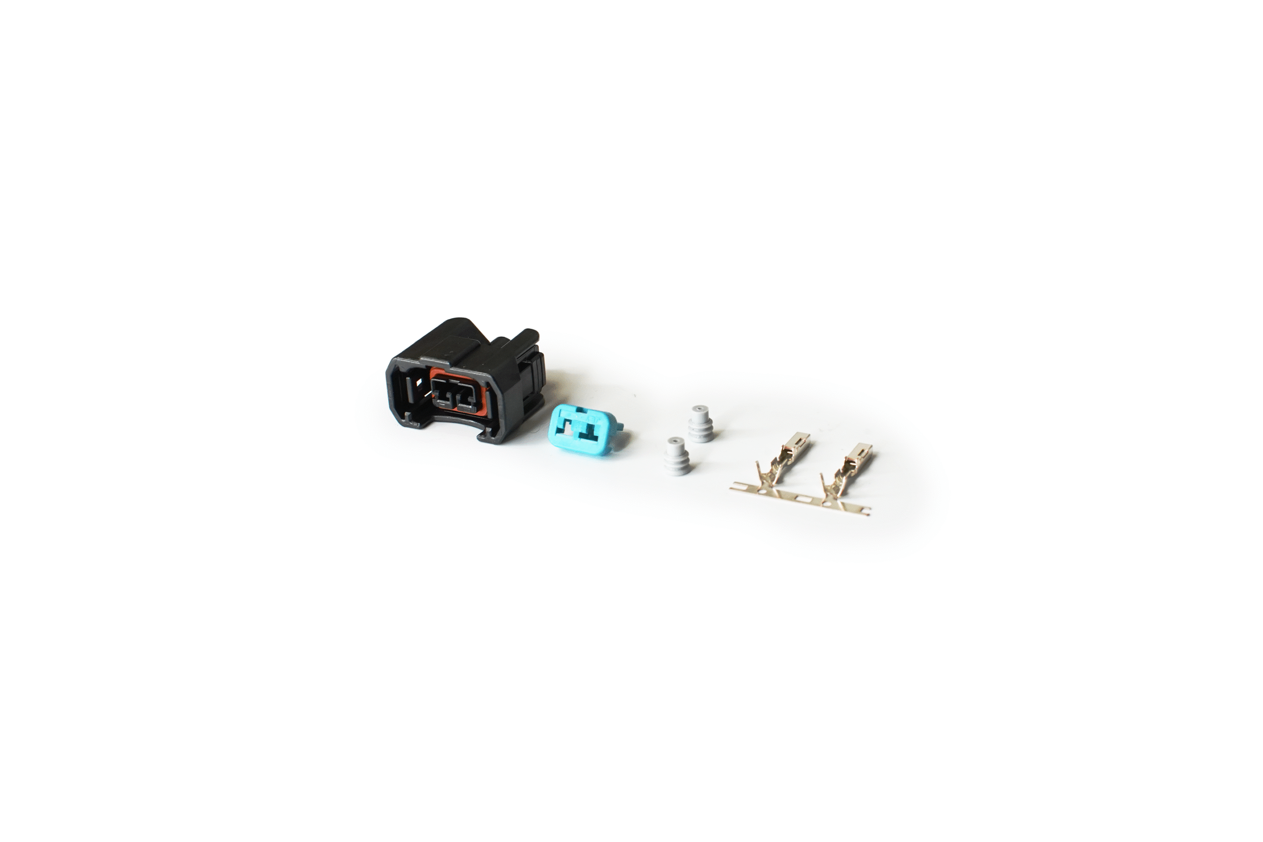 This 2-position sealed connector is the correct plug for Honda OBD2 fuel injectors, used across models such as the 1996–2000 Civic (EK) and 1994–2001 Integra (DC2). Manufactured in the Sumitomo TS Series, it features a sealed housing with a green secondary lock, ensuring a secure connection to the factory injector.