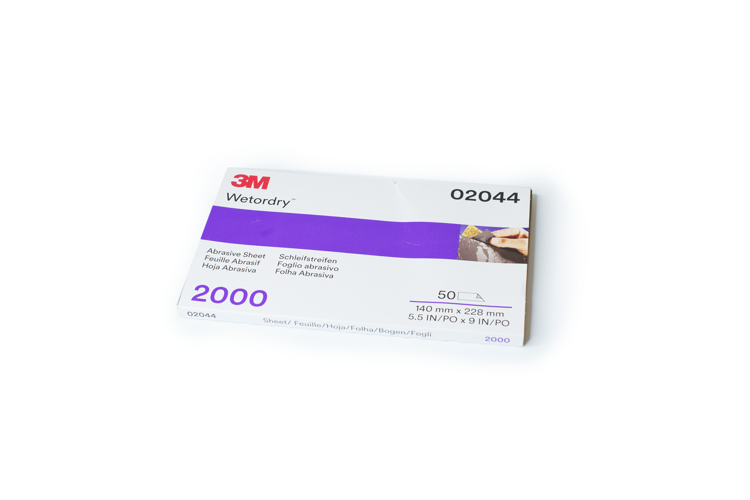 A high-quality abrasive for fine surface leveling and paint preparation. This 2000 grit Wetordry™ sandpaper from 3M is ideal for smoothing primer, removing orange peel, or refining clear coat before polishing.