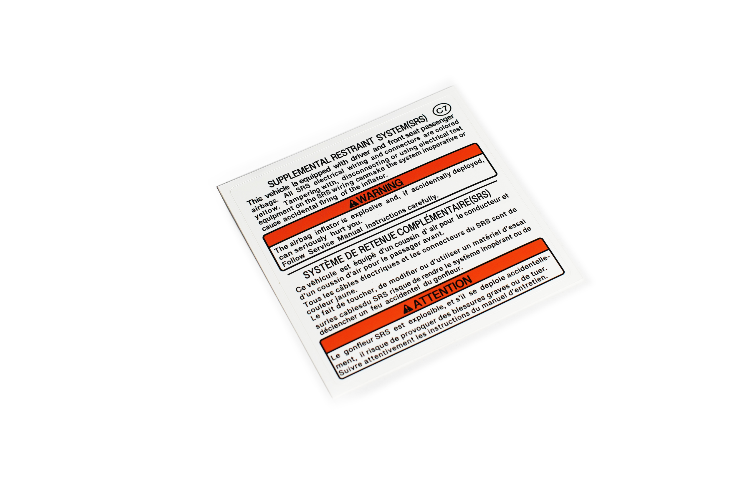 This sticker can replace 94-01 Integra SRS stickers on all Canadian specific models, which has english and the french translation. This sticker locates under the hood of an 94-01 Integra and may possibly work on other models.
