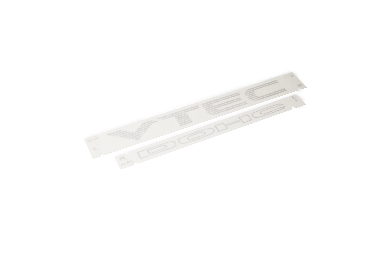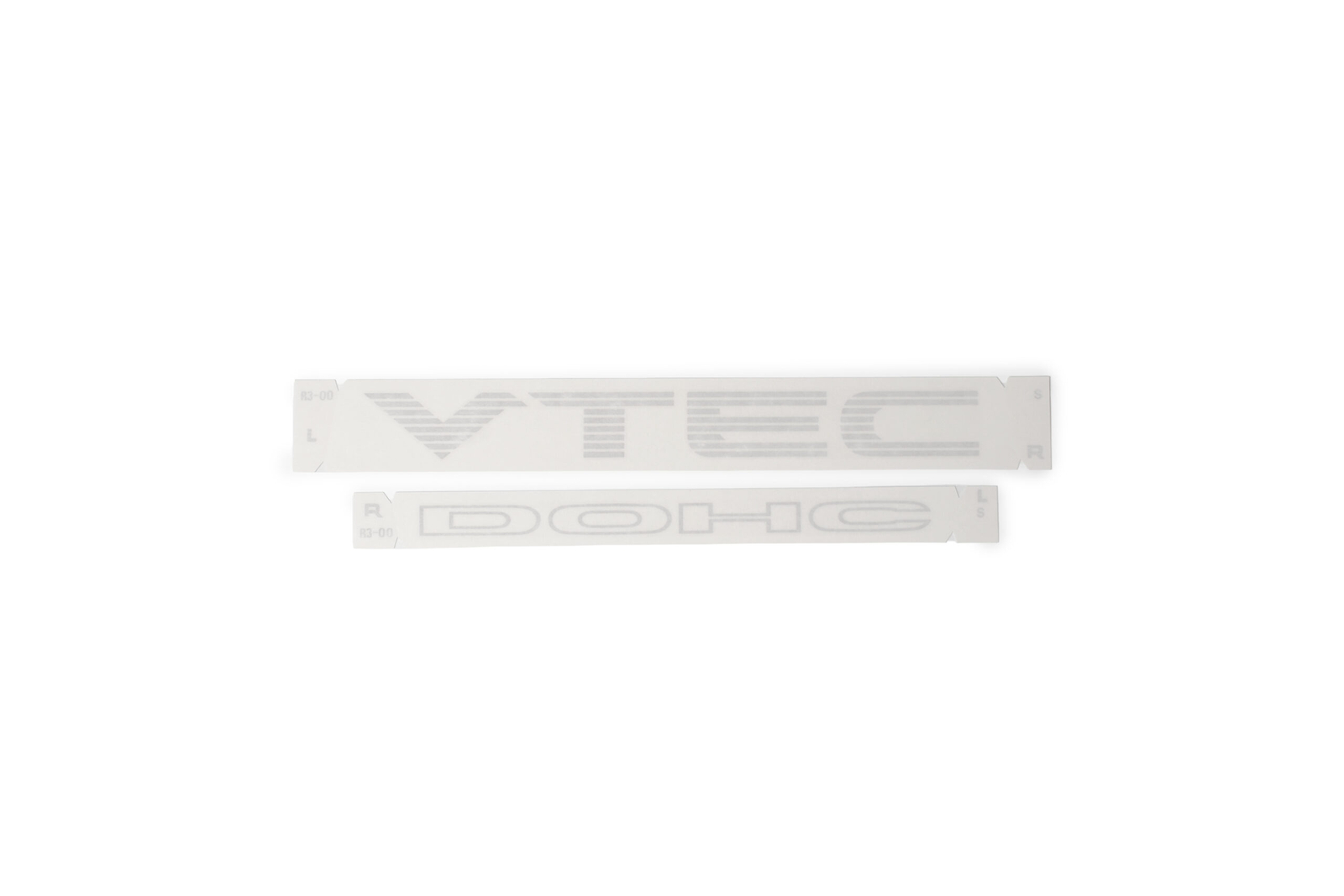 This genuine Honda decal set replicates the factory DOHC VTEC door graphics used on JDM EG-series Civics equipped with B-series VTEC engines. The set includes the correct front and rear pieces needed to complete one full sideof the car in original OEM style.