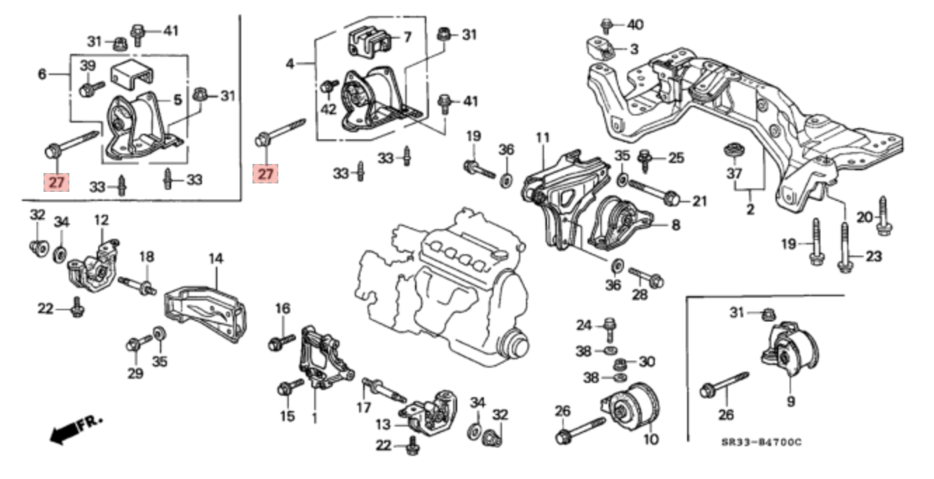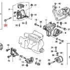 Bolt is used through the rubber engine mount on left side