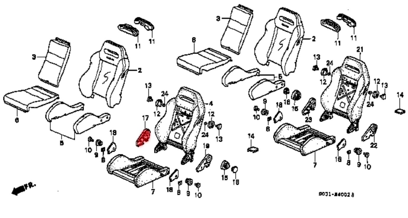 Authentic Recaro Maintenance parts for OEM (DC2) Honda Integra Type R and (Ek9) Civic Type R. These parts will also work on (DC5) Integra Type R SR-4 Seats and other Recaro Speed Seats.