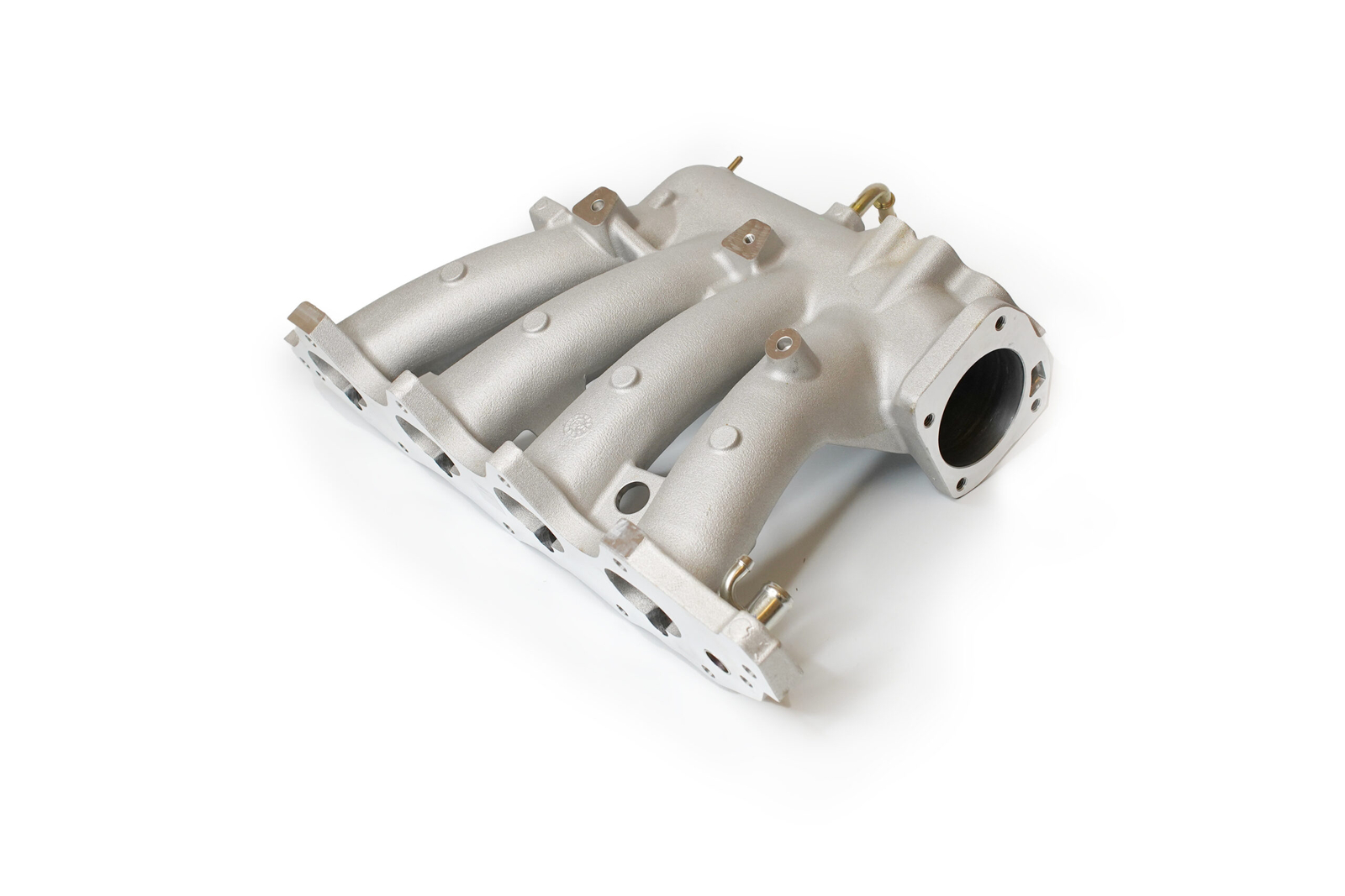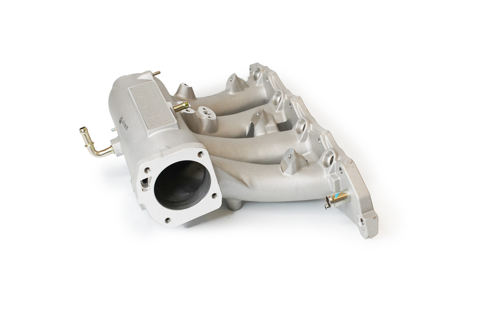 Constructed from cast 356 aluminum and CNC-machined for precision, the manifold features a large plenum and long, equal-length runners to enhance cylinder filling efficiency. The design optimizes flow velocity and volume, resulting in improved throttle response and stronger performance from mid-RPM to redline.