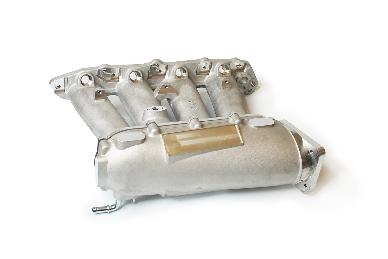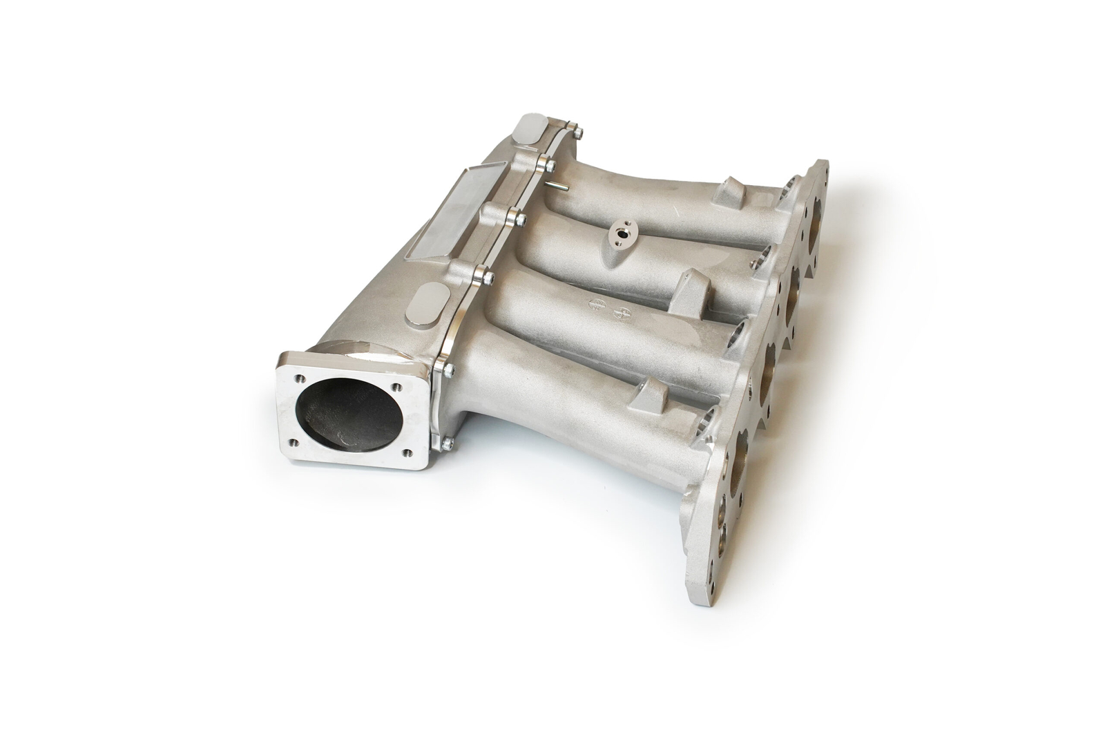 The manifold accepts throttle bodies up to 74 mm and includes thick runner walls for additional porting flexibility. Each unit is cast with provisions for additional sensors and fittings to support high-performance builds.