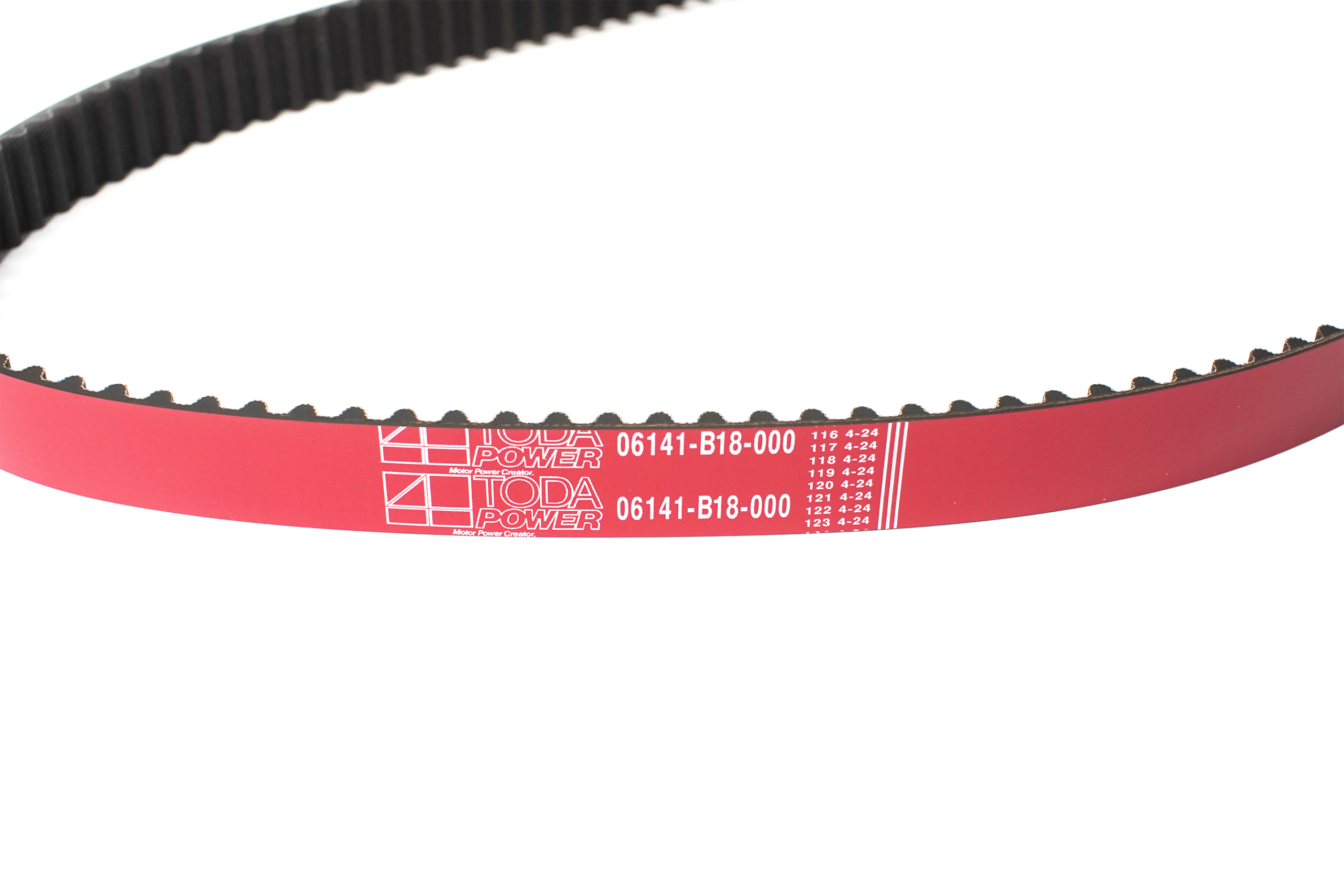 TODA High Power Timing Belts are designed from high quality materials to give improved durability as well as reduced stretch degradation.